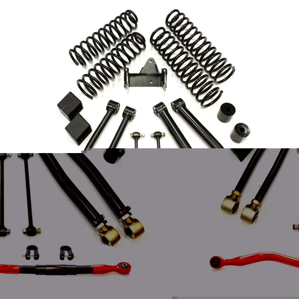 EVO MFG 3″ Enforcer Kit mit Bilstein 5100 Stoßdämpfer inkl. TÜV-Teilegutachten für 4-TürerDie Enforcer Fahrwerke bieten mit den Plush Ride Federn und den speziell abgestimmten King Racing Shocks für dieses Kit ein perfektes Fahrverhalten On und Off Road! Abgerundet wird dieses TOP Fahrwerk mit den einstellbaren Enforcer Längslenker mit den weltweit bekannten Currie Enterprises Johnny Joint Gelenken.Getestet und bewährt auf einer der härtesten Offroad Touren der USA, der JK Experience, gehören die EVO Enforcer Kits zu einem der besten und beliebtesten Fahrwerke in den USA.Alle Komponenten dieser Kits sind 100% MADE IN THE USA und kommen ausschließlich von Namhaften Herstellern wie, EVO MFG, Bilstein, Steer Smarts Lieferumfang:– 3″ Plush Ride Spiralfedern vorne- 3″ Plush Ride Spiralfedern hinten – Stabistangen hinten (vorne werden die hinteren wieder verwendet)- Achsanschläge vorne- Achsanschläge hinten – Einstellbare Längslenker vorne unten, zum Einstellen des Nachlauf – Bremsleitungshalter- Panhardstab Versatzhalter hinten, zur Korrektur der Hinterachse – Steer Smarts YETI XD Panhardstab geschmiedetDie Längslenker u. der Panhardstab lassen sich einfach u. exakt Einstellen für höchstes Fahrvergnügen mit deinem Jeep!Passende Reifengrößen:– 315/70 bzw 35″x12,5″ Reifen mit Original Kotflügel- 37″ Reifen mit Flat oder High Fender